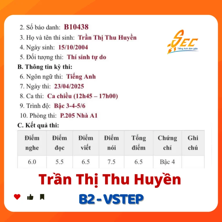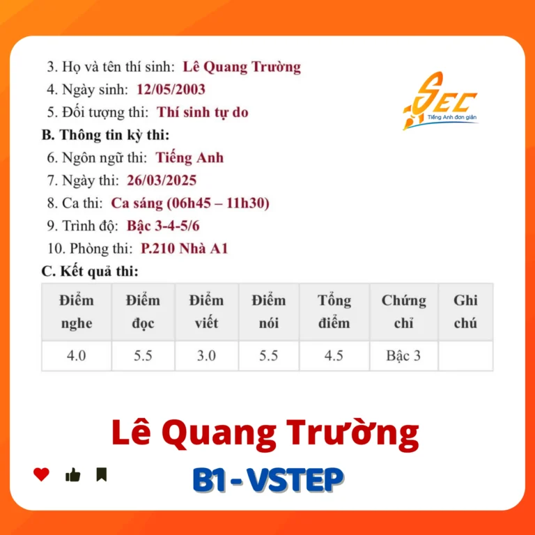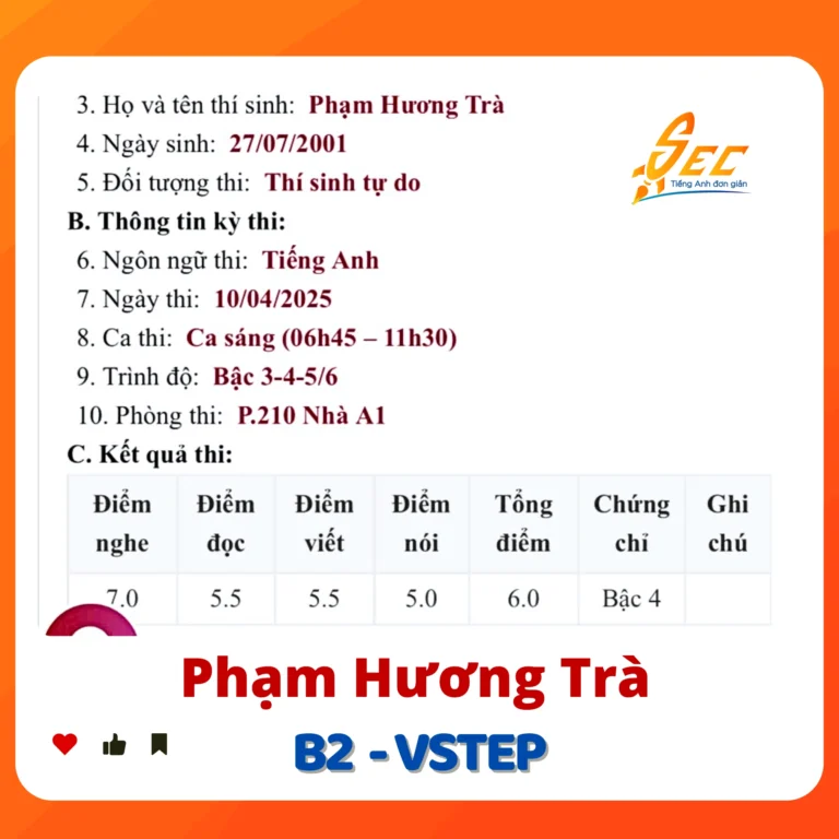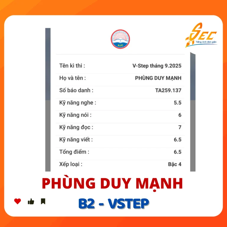 Tham gia học tại SEC để được thầy Đạt hướng dẫn và trải nghiệm phương pháp học tiếng Anh đơn giản, hiệu quả!
